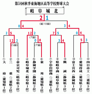 平成17年第58回秋季東海地区高等学校野球大会 平成17年10月・11月 優勝校:岐阜城北 準優勝校:愛知啓成