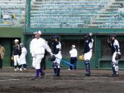 2007年12月16日 日本・アメリカ国際親善試合 練習会12.15 ノックの後、今日は実際のピッチャーによるシートバッティングが行われ、審判部から今回の遠征に参加される、増山さん、山田さん、奥田さんがジャッジメントをしてくださいました。 成章高校の小川君 中京大中京の田中君 東邦高校の山田君。 星城高校の角谷君