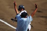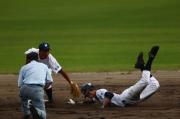 2011年07月14日 「一瞬の夏 あなたの1枚」岡崎球場 藤井 尚さん 岡崎球場 撮影日 7月10日 豊田南高校 対 海翔高校 公立高校どうしの対戦になり序盤は接戦でした。 1点差に迫られた5回豊田南高校は2本の三塁打で突き放しました。 豊田南高校の藤井投手はストレートの伸びが今一歩でしたが、するどく変化する カーブ、スライダーで 相手打者をかわし、7回完投しました。
